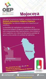 Cuña informativa sobre qué se decidirá y cuál es la pregunta que se realizará en Mojocoya, Chuquisaca.