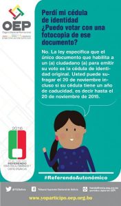 Afiche informativo con las 15 preguntas que se realizarán en el Referendo de Estatutos Autonómicos y Cartas Orgánicas 2016, en las 15 Entidades Territoriales Autónomas.