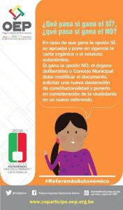 Cuña informativa sobre qué se decidirá y cuál es la pregunta que se realizará en el Municipio de Cuatro Cañadas, Santa Cruz.