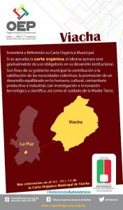 Cuña informativa sobre qué se decidirá y cuál es la pregunta que se realizará en el Municipio de Viacha, La Paz.