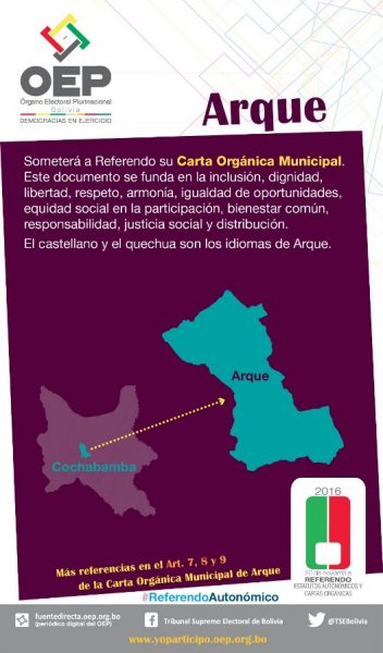 Cuña informativa sobre qué se decidirá y cuál es la pregunta que se realizará en el Municipio de Arque, Cochabamba.