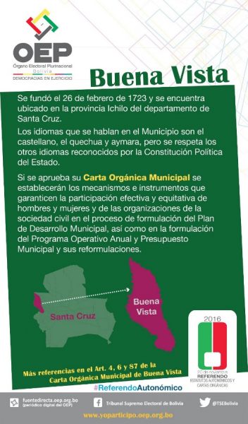 Cuña informativa sobre qué se decidirá y cuál es la pregunta que se realizará en el Municipio de Buena Vista, Santa Cruz.