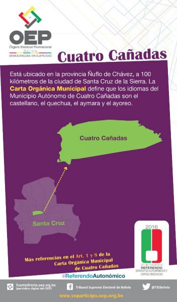 Cuña informativa sobre qué se decidirá y cuál es la pregunta que se realizará en el Municipio de Cuatro Cañadas, Santa Cruz.