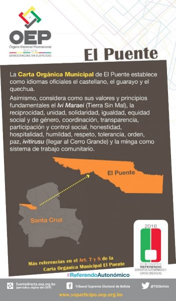 Cuña informativa sobre qué se decidirá y cuál es la pregunta que se realizará en el Municipio de El Puente, Santa Cruz.