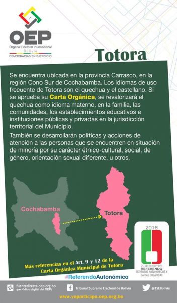 Cuña informativa sobre qué se decidirá y cuál es la pregunta que se realizará en el Municipio de Totora, Cochabamba.