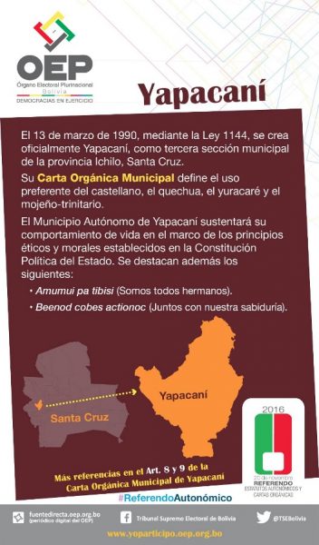 Conoce la pregunta que se hará en el Municipio de Yapacaní