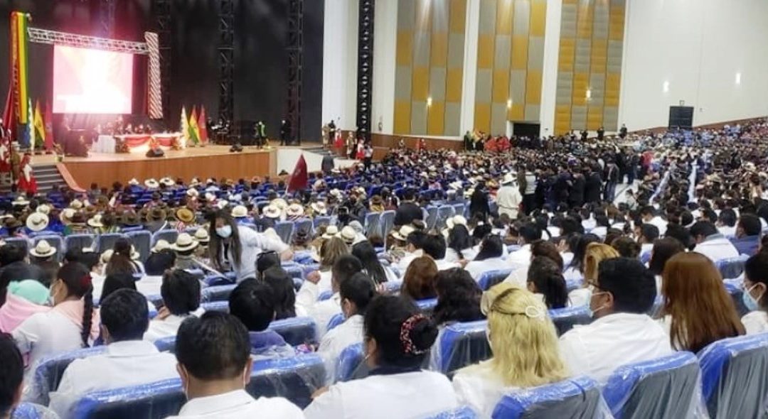 Ambas autoridades estuvieron presentes en la solemne Sesión de Honor de la Asamblea Legislativa Departamental de Oruro, en el Gran Teatro Internacional de Oruro, realizada este miércoles.