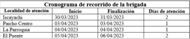 Esta tarea se hará realidad gracias a la coordinación con las autoridades locales del municipio, como la alcaldesa, Sara Armella Rueda; la asesora legal del municipio, Elia Dávalos Burgos, la representante de Paicho Centro, Ema Gutiérrez, al igual que de La Parroquia, Ana María Velásquez, y de Iscayachi, Rolando Mercado.