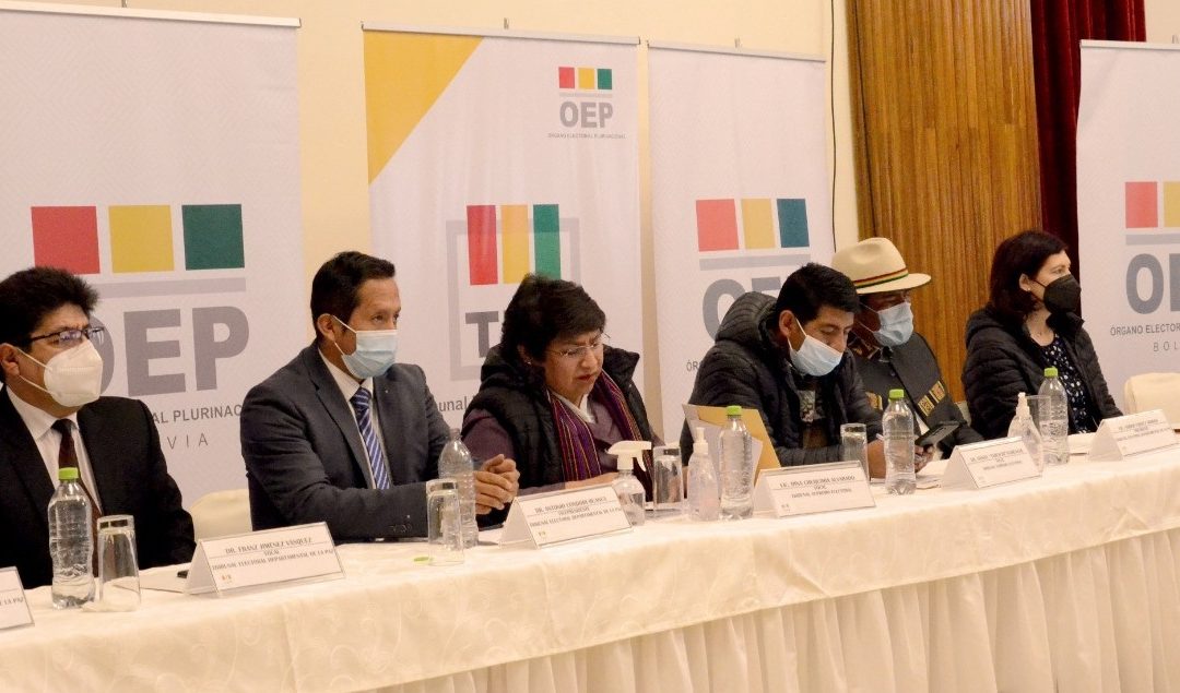 La vocal del TSE, Dina Chuquimia, destacó que el trabajo del Órgano Electoral Plurinacional (OEP) “no comienza con estos encuentros, sino que se ha estado trabajando un proceso de socialización desde la gestión 2020 y 2021 con talleres de capacitación sobre sus derechos a las mujeres electas como concejalas y asambleístas”.