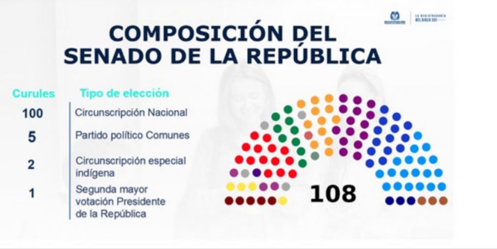 El próximo domingo 13 de marzo, cerca de 39 millones (38.817.347) de colombianos estarán eligiendo a: 108 senadores, de los cuales 100 son de circunscripción nacional, 5 representan a partidos político comunes, 2 Circunscripción especial indígena y 1 senador quien será el candidato a la presidencia de la República de ese país.