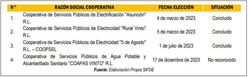En la gestión 2023, el Tribunal Electoral Departamental (TED) de Oruro realizó la supervisión a cuatro procesos de elección de autoridades de Administración y Vigilancia de las cooperativas de servicios públicos.