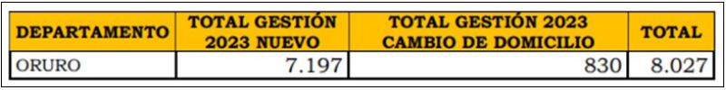 En la gestión 2023, 7.197 ciudadanas y ciudadanos mayores de 18 años se inscribieron en el Padrón Electoral Biométrico (PEB), además se registró 830 actualizaciones de domicilio, según datos proporcionados por el Servicio de Registro Cívico (Serecí).