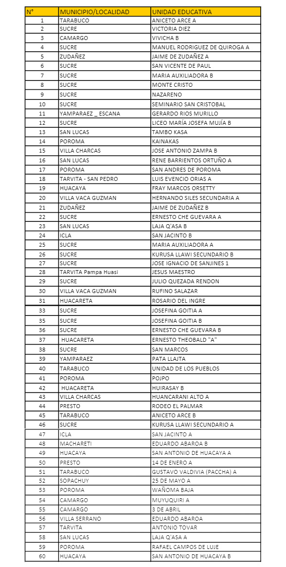 Este jueves 31 de agosto, 60 equipos pasaron a la segunda fase eliminatoria de las Olimpiadas de la Democracia Intercultural en el departamento de Chuquisaca, que continuará el miércoles 6 de septiembre, los clasificados competirán de manera virtual, acorde al cronograma que será publicado en la página oficial del Facebook del Tribunal Electoral Departamental (TED) de Chuquisaca.