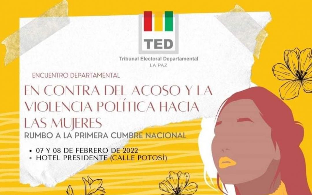 El Tribunal Electoral Departamental de La Paz (TEDLP), inaugurará este lunes 7 de febrero el ciclo de Encuentros Departamentales previos a la primera Cumbre Nacional para prevenir el Acoso y la Violencia Política hacia las Mujeres.