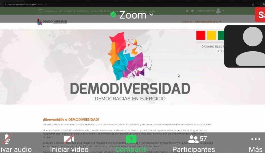 El Tribunal Electoral Departamental (TED) de Santa Cruz, a través de la Dirección Nacional y Departamental del Servicio Intercultural de Fortalecimiento Democrático (Sifde), con la participación de la Dirección Departamental de Educación, llevó adelante el taller de capacitación virtual sobre el fortalecimiento de la democracia intercultural en el sistema educativo departamental.