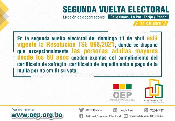 Una empresa encuestadora podrá difundir resultados de conteo rápido en el departamento de Chuquisaca en la segunda vuelta de la elección de Gobernador 09/04/202112/01/2024 Leer más...
