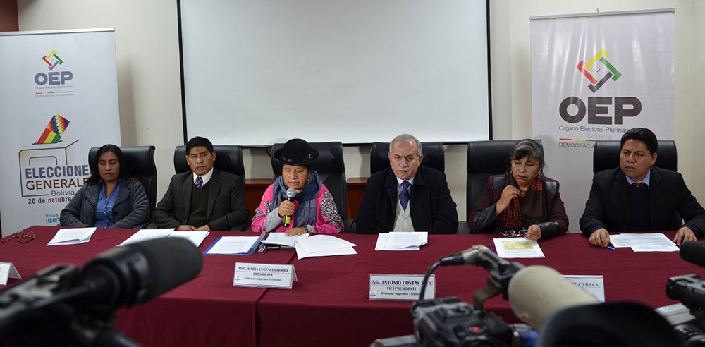 Noticias Elecciones Generales: ¿En qué consiste la propaganda de fortalecimiento público y hasta cuándo deben registrarse los medios de comunicación? 21/06/201923/01/2024 Leer más... El TSE remite a la Fiscalía investigación del caso de Riberalta y garantiza transparencia en el registro electoral 17/06/201912/01/2024 Leer más... Elecciones Generales: en nueve días, el TSE registró a más de 105 mil personas en Bolivia y en el exterior 10/06/201912/01/2024 Leer más... Los medios de comunicación podrán habilitarse para la difusión de propaganda electoral pagada hasta el 5 de septiembre 07/06/201914/06/2024 Leer más... Elecciones Generales: este jueves termina el plazo para la presentación de los estados financieros de las nueve organizaciones políticas 05/06/201912/01/2024 Leer más... En Italia las y los bolivianos también se empadronan para las Elecciones Generales 2019 01/06/201912/01/2024 Leer más... El OEP moviliza 1.732 equipos de registro para el empadronamiento masivo en Bolivia y en el exterior 01/06/201912/01/2024 Leer más... El TSE fija 98 actividades en el calendario para las Elecciones Generales del 20 de octubre 28/05/201912/01/2024 Leer más... El TSE administrará las Elecciones Generales para el 20 de octubre con el reto de alcanzar el ISO Electoral 27/05/201912/01/2024 Leer más... Referendo Autonómico: según resultados preliminares, en seis entidades territoriales ganó el Sí a sus normas autonómicas y en cuatro el No 26/05/201914/06/2024 Leer más... Referendo Autonómico: 75.735 personas en 10 entidades territoriales autónomas decidirán este domingo sobre sus cartas orgánicas y estatuto autonómico 26/05/201912/01/2024 Leer más... Empadronamiento en el exterior: Es un derecho de quienes estamos lejos de nuestro país 23/05/201912/01/2024 Leer más... Vocal Gonzales: “La ciudadanía puede inscribirse en el Padrón Electoral Permanente y habilitarse con anticipación para el día de la votación” 23/05/201912/01/2024 Leer más... Argentina: conozca a Dalmiro Condory, un boliviano voluntario en la difusión del empadronamiento permanente 09/05/201912/01/2024 Leer más... Argentina: Aurora Rodríguez ejercerá su voto como ciudadana boliviana después de 36 años 08/05/201912/01/2024 Leer más... Brasil: conozca la historia de tres bolivianas que viven en Sao Paulo y votarán por primera vez en las Elecciones Generales 2019 06/05/201912/01/2024 Leer más... En un día, el Sereci entregó 113 certificados de nacimiento gratuitos a las y los afectados por el deslizamiento en La Paz 06/05/201912/01/2024 Leer más... El OEP entregará certificados gratuitos a damnificados del deslizamiento en La Paz 04/05/201912/01/2024 Leer más... El TSE y la Cancillería coordinan la logística para el empadronamiento masivo en el exterior 01/05/201912/01/2024 Leer más... Brasil: por la masiva asistencia, un punto de empadronamiento atenderá en Coímbra durante el mes de mayo 30/04/201912/01/2024 Leer más...← Anterior 1 … 112 113 114 … 123 Siguiente → Más noticias del OEP en: Buscar: Organizaciones políticas Consulta previa Autonomía indígena campesina Elecciones en cooperativas Análisis e investigación Comunicación e información Educación para las democracias