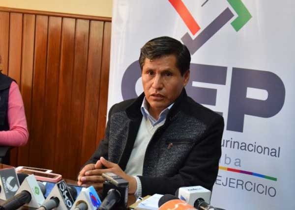 Noticias Aquejado por una enfermedad, Vocal Exeni renuncia al TSE 01/10/201812/01/2024 Leer más... La presidenta del TSE, Katia Uriona, ratifica su disidencia con el Reglamento para las Elecciones Primarias 29/09/201812/01/2024 Leer más... Mediante Resolución de Sala Plena, el TSE aprueba el Reglamento para Elecciones Primarias 2019 28/09/201812/01/2024 Leer más... Convocan a la postulación de oficiales de registro civil para más de 50 municipios del país 27/09/201812/01/2024 Leer más... El TSE prevé hacer conocer el Reglamento para las Elecciones Primarias esta semana 26/09/201812/01/2024 Leer más... El OEP lanzó la campaña “Yo no soy X” para motivar el registro biométrico de más de 100 mil estudiantes de 5° y 6°de secundaria en Bolivia 26/09/201812/01/2024 Leer más... El Alcalde de Bolpebra se someterá al primer Referendo de Revocatoria de Mandato el 16 de diciembre 21/09/201812/01/2024 Leer más... El TSE premió al anteproyecto de diseño arquitectónico del edificio de la entidad electoral 21/09/201812/01/2024 Leer más... En Cochabamba se archivaron 21 revocatorios y tres avanzaron a la etapa de verificación de datos 31/05/201812/01/2024 Leer más... El OEP publicó el Calendario Electoral para el Referendo Autonómico en Yacuiba con 62 actividades 31/05/201812/01/2024 Leer más... El TSE convoca a la elección de la alcaldesa o alcalde de Cotagaita para el 28 de octubre 30/05/201812/01/2024 Leer más... El TSE convoca a referendo autonómico de la carta orgánica de Yacuiba 29/05/201812/01/2024 Leer más... En Santa Cruz y Chuquisaca cierran los revocatorios y ningún proceso avanza 25/05/201812/01/2024 Leer más... En Santa Cruz concluyen los plazos de entrega de libros y ningún revocatorio avanza 25/05/201812/01/2024 Leer más... En Potosí, Tarija y Beni se cierra la posibilidad de llevar adelante los revocatorios a autoridades electas 24/05/201830/06/2022 Leer más... Pando: revocatorio para el Alcalde de Filadelfia pasa a la etapa de verificación de datos en el Padrón 23/05/201812/01/2024 Leer más... Los libros para la revocatoria del Alcalde de Cliza y para concejales de Arani pasan a la etapa de verificación de datos en el Padrón 21/05/201812/01/2024 Leer más... Gutiérrez aprueba su proyecto de Estatuto Autonómico Indígena y perfila su denominación a Kereimba Iyaambae 21/04/201812/01/2024 Leer más... Tarija: 17 promotores de las revocatorias no presentaron libros en los plazos establecidos 19/04/201806/11/2023 Leer más... Beni: archivan los revocatorios para alcaldes de Magdalena y San Ignacio de Moxos por errores en el llenado de libros 19/04/201806/11/2023 Leer más...← Anterior 1 … 117 118 119 … 123 Siguiente → Más noticias del OEP en: Buscar: Organizaciones políticas Consulta previa Autonomía indígena campesina Elecciones en cooperativas Análisis e investigación Comunicación e información Educación para las democracias