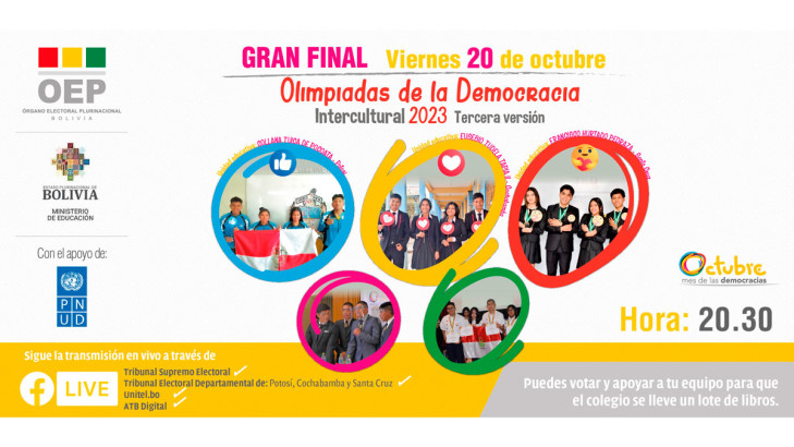 La final de las Olimpiadas de la Democracia Intercultural 2023 se realizará este viernes 20 de octubre en la ciudad de La Paz, desde las 20.30 horas, con la participación…