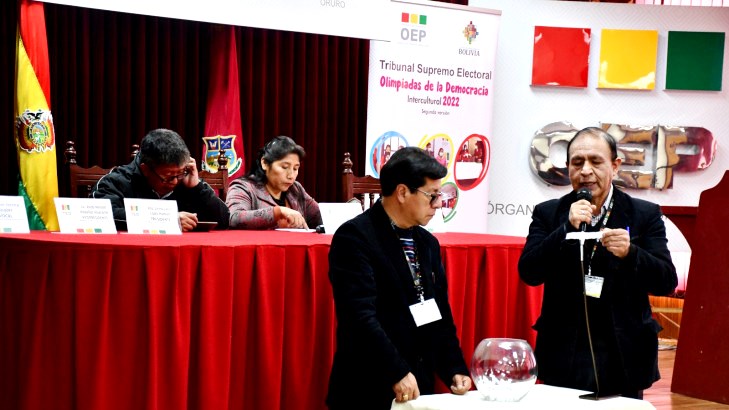 Agrupados en 100 equipos de cuatro integrantes, estudiantes de 68 unidades educativas de Oruro buscarán la representación del departamento en la fase nacional de la Olimpiada de la Democracia Intercultural,…
