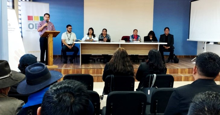 La vocal del Tribunal Supremo Electoral (TSE) Dina Chuquimia, a tiempo de difundir y promover la Ley 243 Contra el Acoso y Violencia Política ante asambleístas departamentales de Oruro, aclaró…