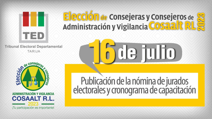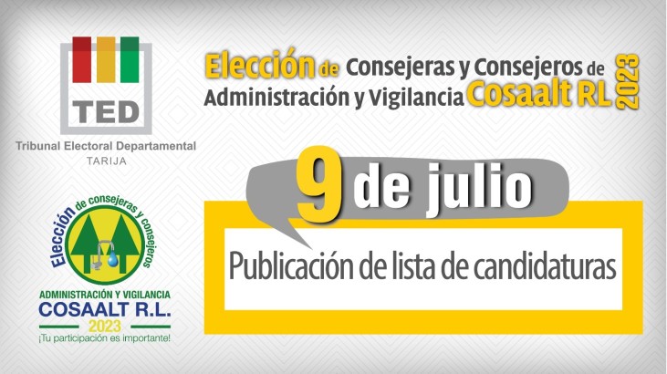 TED Tarija publica la lista de candidaturas para las elecciones de Cosaalt RL