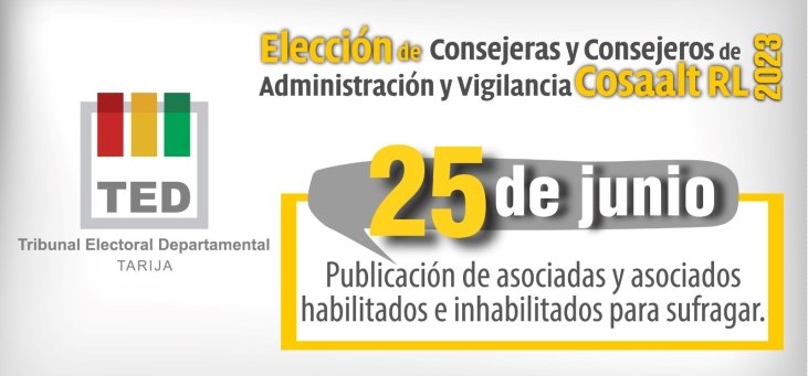 TED Tarija publica la lista de habilitados e inhabilitados para las elecciones de Cosaalt RL