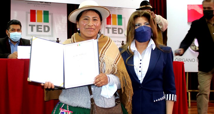 El Tribunal Electoral Departamental (TED) de Oruro, a través de su presidenta Zelma López, entregó su credencial a Sara Poma Huarachi, del ayllu Kulli Yaretani, autoridad electa como Qulqi Kamachi…