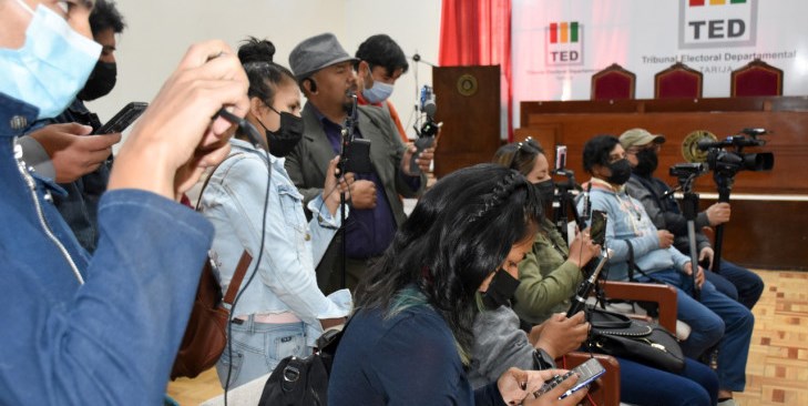 En conferencia de prensa, autoridades del Tribunal Electoral Departamental (TED) de Tarija socializan la convocatoria a la segunda versión de las Olimpiadas de la Democracia Intercultural 2022, con el objetivo…