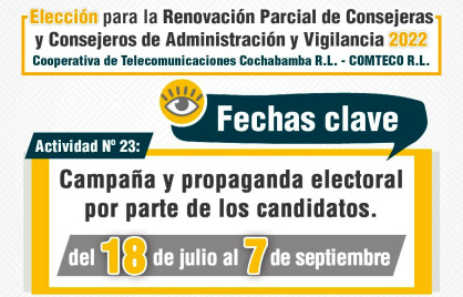 TED Cochabamba: candidatas y candidatos de Comteco RL harán campaña y difundirán propaganda electoral hasta el 7 de septiembre