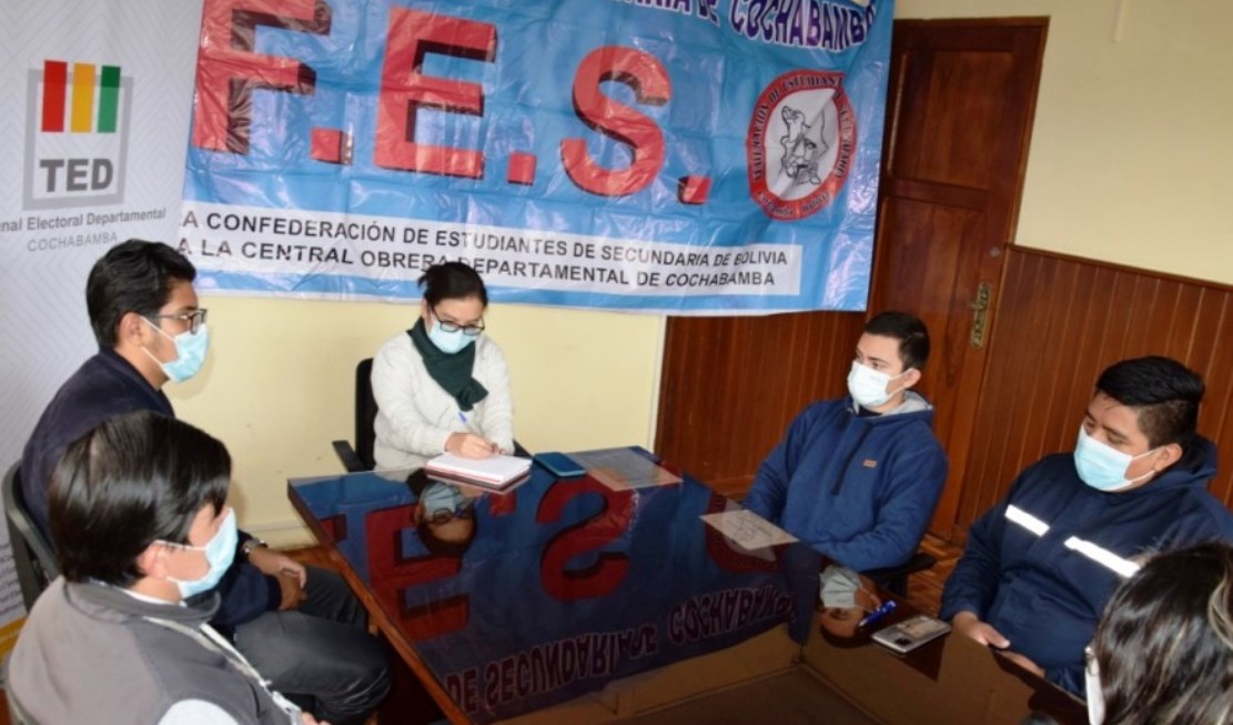 El Tribunal Electoral Departamental (TED) de Cochabamba sostuvo una reunión técnica de coordinación con representantes de la Federación de Estudiantes de Secundaria (FES) para tratar el tema sobre la “Elección…