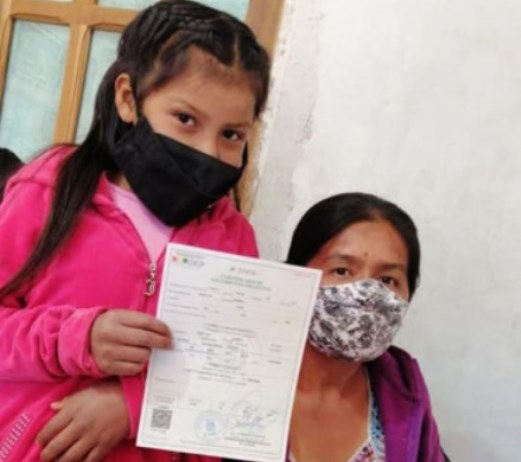Oruro: los 11 hijos de una familia de escasos recursos reciben certificados de nacimiento